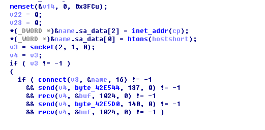 病毒加载如果成功链接http://www.iuqerfsodp9ifjaposdfjhgosurijfaewrwergwea.com 则结束样本运行,如果失败则向下执行