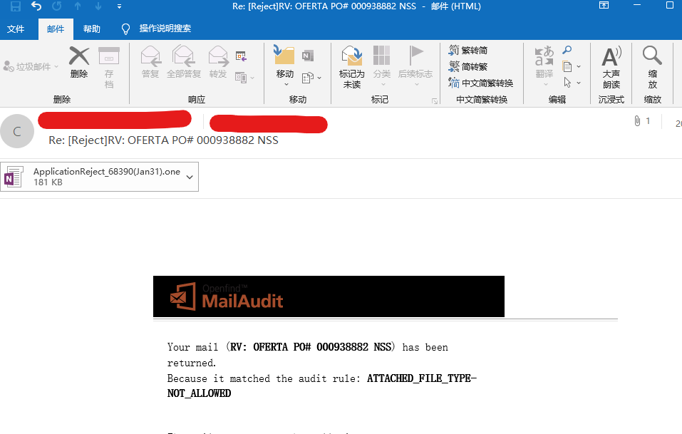 Microsoft OneNote是Windows旗下的一款文档软件,可以免费下载,包含在Microsoft Office 2019和Microsoft 365中。由于 Microsoft OneNote 默认安装在所有 Microsoft Office/365 产品中,因此即使 Windows 用户不使用该应用程序,它仍然可以打开.one类型文件格式。OneNote恶意邮件通过伪装成 DHL 运输通知、发票、ACH 汇款表格、机械图纸和运输文件等钓鱼邮件,迷惑用户点击。与 Word 和 Excel 不同,前者启动脚本是通过宏,而OneNote 不支持宏,但是OneNote 允许用户将附件插入到文档中,双击该附件时,将启动附件,在不经意间就会中毒。
