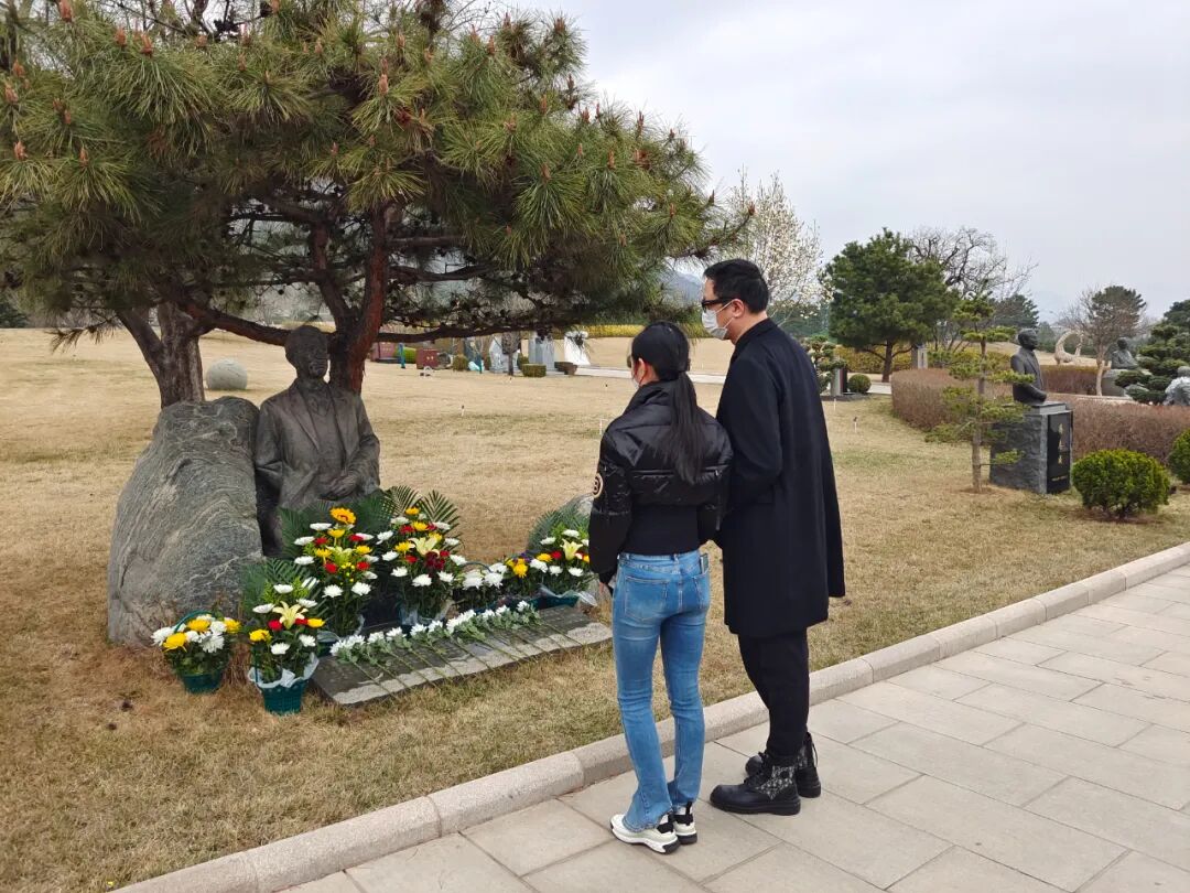 董事长郭昌盛、CEO聂永春为王老师献花祭扫