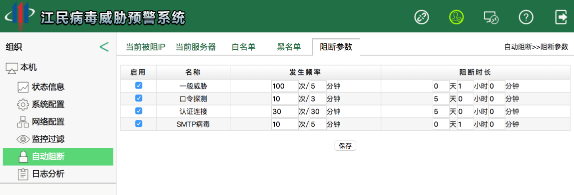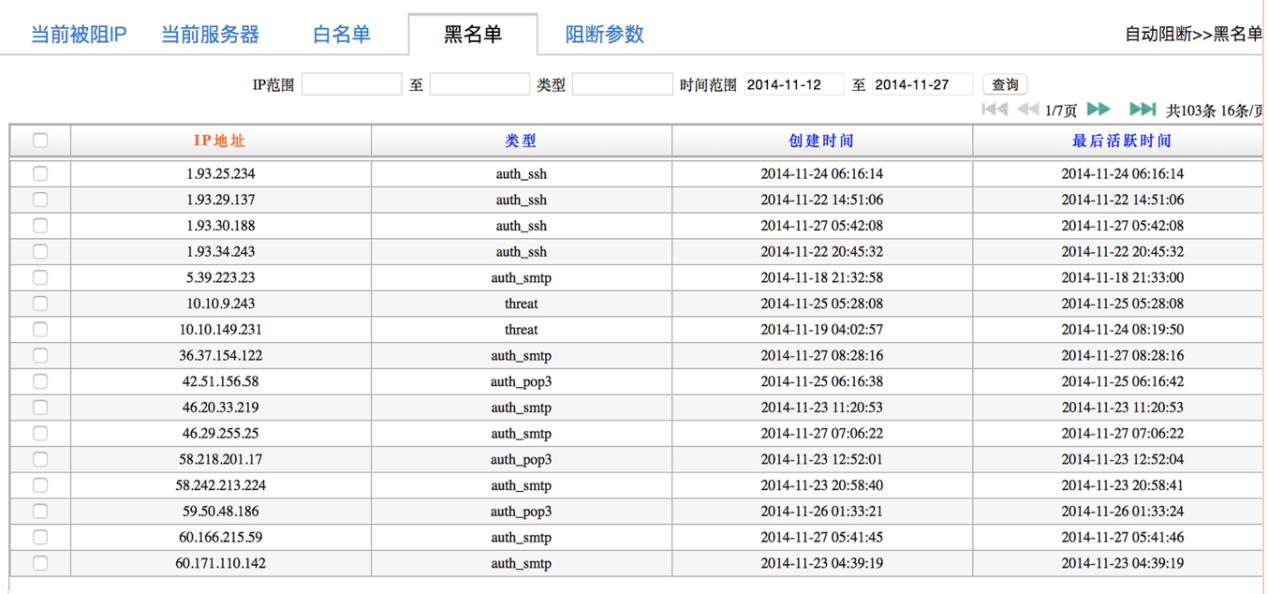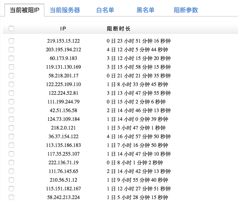 当前被阻IP,可呈现外部所发起攻击的恶意IP地址。