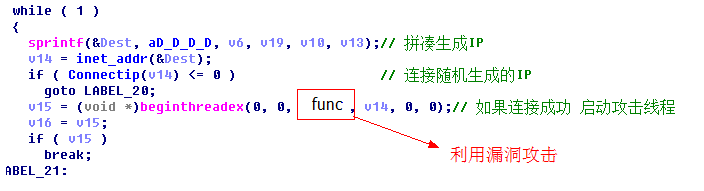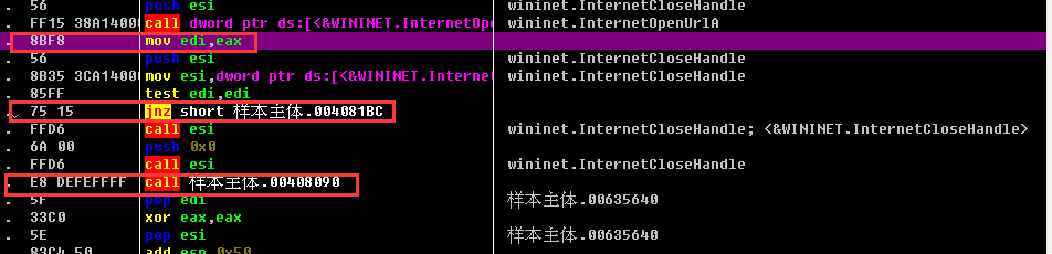 病毒加载如果成功链接http://www.iuqerfsodp9ifjaposdfjhgosurijfaewrwergwea.com 则结束样本运行,如果失败则向下执行