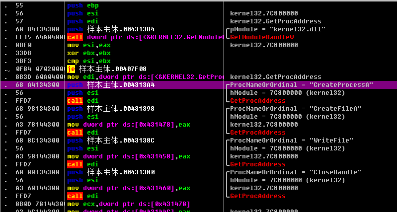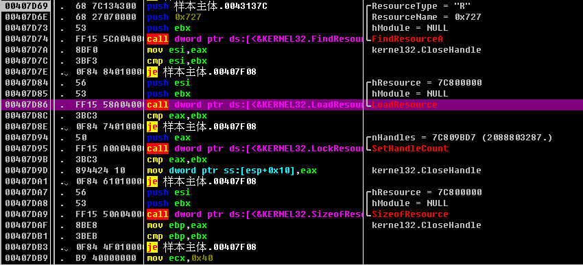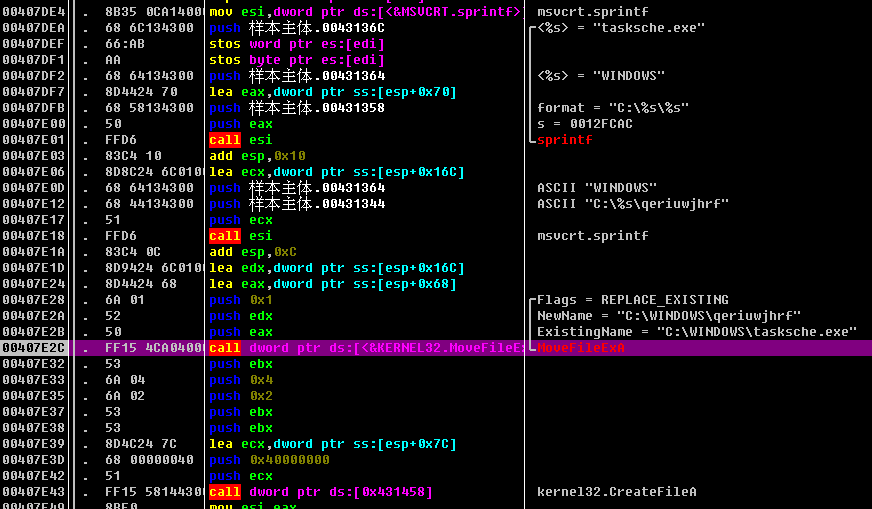 查找资源,释放样本的加密工具,拼接字符串为释放路径,createfile并启动程序