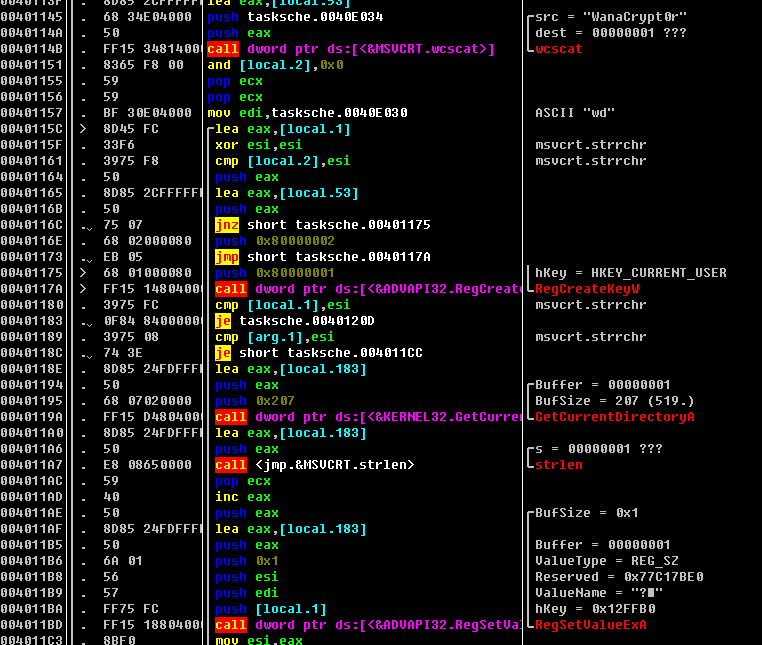 包括提权模块taskse.exe 、 清空回收站模块taskdl.exe、解密器程序@WanaDecryptor@
