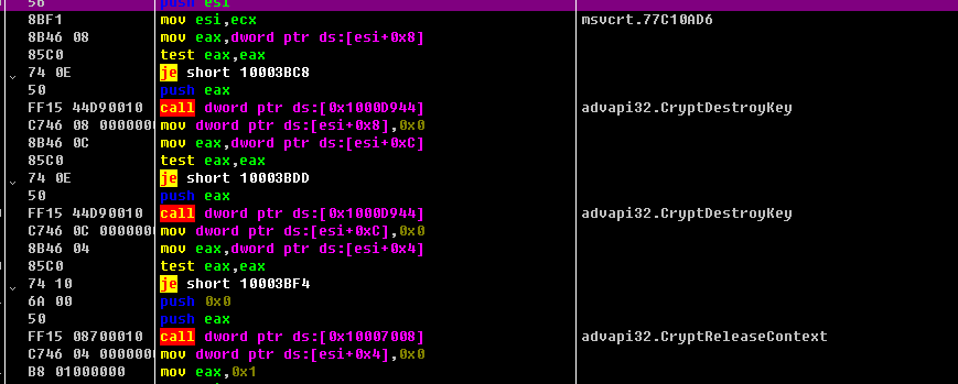 整个加密过程采用RSA+AES的方式完成,其中RSA加密过程使用了微软的CryptAPI,AES代码静态编译到dll