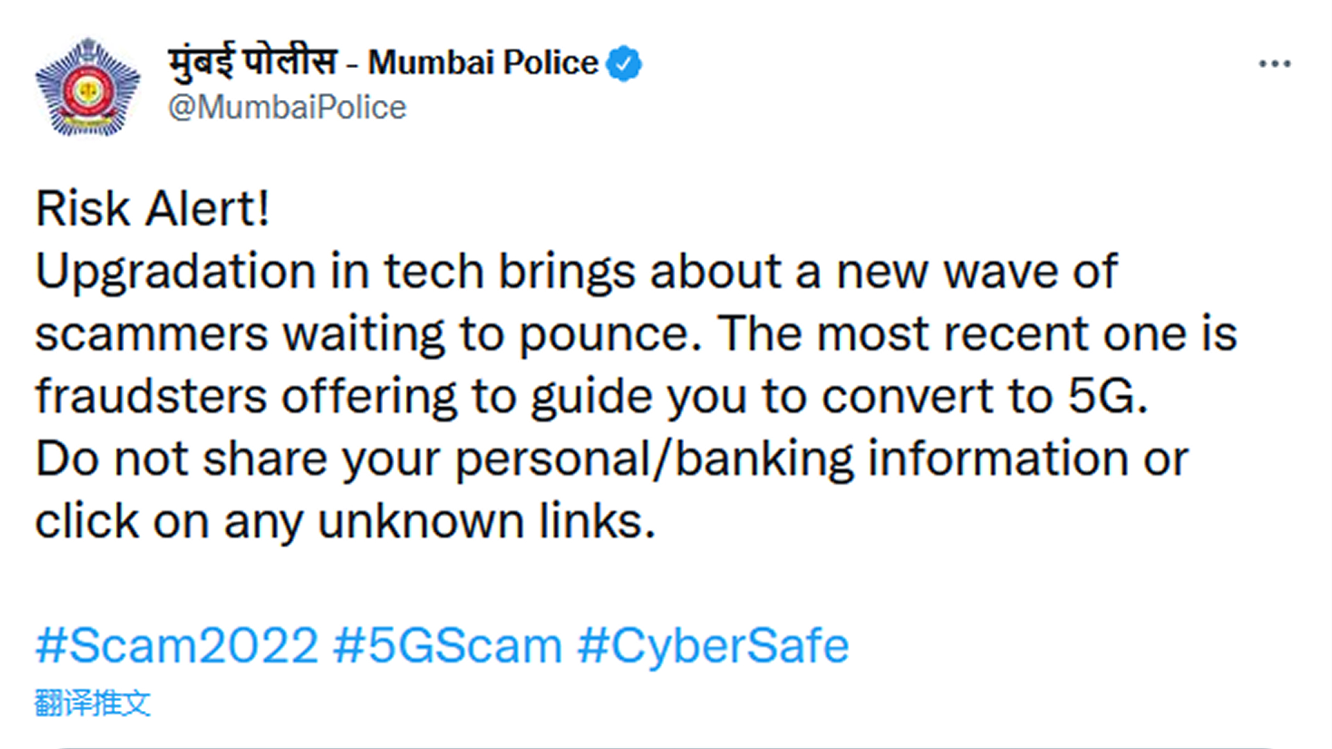 印度总理纳伦德拉·莫迪(Narendra Modi)于 10 月 1 日宣布在印度启动 5G 服务,但是在带来更快网络体验的同时,也出现了各种诈骗活动。孟买警方称:“欺诈者以提供 5G 升级指南为由进行欺骗”,同时表示新一波骗子可以通过个人信息或未知链接进行诈骗。