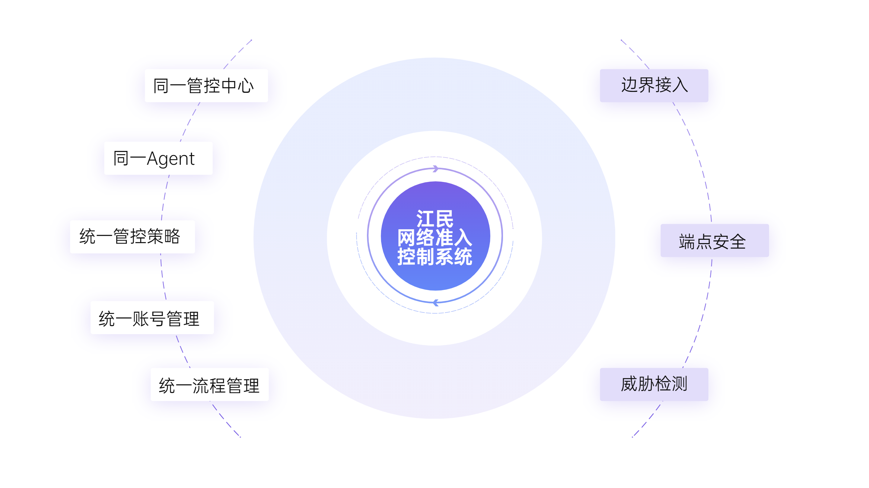 江民准入控制系统支持802.1x、EOU、NACC等多种准入控制技术,适应有线、无线、VPN、NAT、分支结构接入等复杂网络环境。还可与其他江民安全产品形成联动,构建集安全加固、行为管理、边界安全管理、网络安全管理、数据安全管理和补丁管理等安全能力于一体的全方位管理体系,为用户营造安全可靠的网络环境。