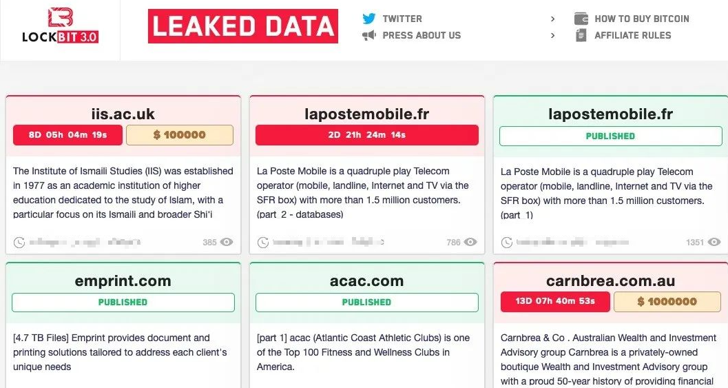 LockBit 3 勒索软件泄露网站