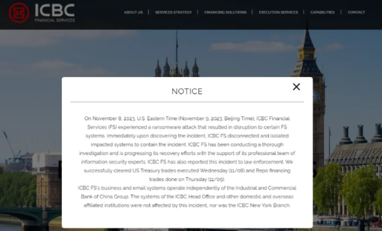 11月8日,工银金融服务有限责任公司(工银金融)官网发布声明称,遭LockBit勒索软件攻击,导致部分系统中断。工银金融成立于2010年7月12日,是中国工商银行在美全资子公司。