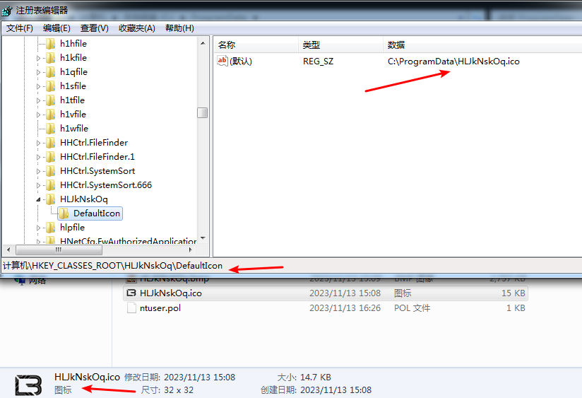 4、然后样本在C:\ ProgramData下生成lockbit的图标文件用于将感染文件图标进行替换,主要是通过关联注册表的方式实现。
