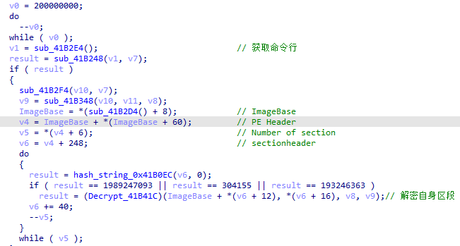 2、在对样本调试分析当中,发现Lockbit3.0需要一个pass参数来解密其主程序,否则逆向进程就会崩溃自解密区段,对.text、.data、.pdata三个区段进行解密操作。