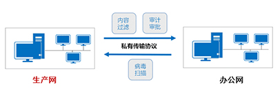 防止隐蔽通道的存在 , 交换中有详细完整的审计、交换后有内容备份可查非 IP 通信 + 防病毒木马检测可有效地抵御外部攻击。